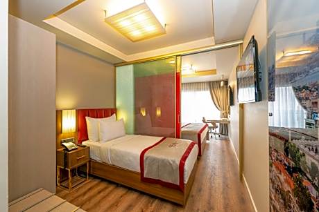 Great care is taken to ensure guests experience comfort through top-notch services and amenities.Remain linked during your visit by utilizing the complimentary internet access available.Prior to your check-in date, you can arrange airport transportation services, guaranteeing a seamless and efficient experience for both arrival and departure. Experience the wonders of İstanbul with ease by utilizing the services provided at taxi.Parking is accessible, supplied by the hotel for guests who arrive by car.Effortlessly plan your daily activities and travel requirements with concierge service, express check-in or check-out, luggage storage and safety deposit boxes provided by the front desk services. Securing passes to the city's top attractions is simple with the hotel's ticket service and tours.During your stay at this fantastic hotel, experience comfort and warmth from the delightful on-site fireplace on those chilly days and nights. For extended visits or whenever required, the dry cleaning service and laundry service ensures your preferred travel garments remain clean and accessible. During leisurely days and evenings, in-room amenities such as 24-hour room service, room service and daily housekeeping enable you to maximize your stay in the room.The hotel is completely smoke-free. In limited designated zones, smoking is exclusively permitted. Crafted for coziness, every guestroom provides an array of features, guaranteeing a tranquil night's sleep while maintaining the level of comfort.Expand your in-room entertainment choices with various amenities, such as television offered in certain accommodations.Rest assured that your hydration needs will be met, as some guestrooms are equipped with a refrigerator, a coffee or tea maker and mini bar.Maintain your cleanliness and comfort using a hair dryer, toiletries and bathrobes available in select guest restrooms. Chosen accommodation prices might include entry to the executive lounge, offering premium services amid an ambiance of refined extravagance. Begin your day on a delightful note with a scrumptious complimentary breakfast, consistently served at Ramada by Wyndham Istanbul Pera.Begin your holiday mornings right with your essential cup of coffee, offered daily at the cafe on-site. During your visit, indulge in a range of delightful culinary choices at hotel to enhance your experience.Enjoy an entertaining evening alongside your fellow travelers at hotel's very own bar and nightclub.Do you possess exceptional culinary skills? Prepare your meals personally within the hotel at its shared kitchen.Indulge in the numerous pursuits available at Ramada by Wyndham Istanbul Pera.Treat and spoil yourself by stopping at massage, salon, steam room and sauna for a memorable experience. Begin your holiday perfectly by taking a plunge into the swimming pool.Eliminate those holiday calories by stopping by hotel and making use of their well-equipped exercise amenities. License Number(s): 18984