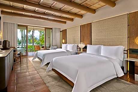Gourmet dining options, full-service spa treatments and top-rated golf courses are all on-site at this AAA Five Diamond Award-winning resort. The resort overlooks the Pacific Ocean and rooms include private terraces. At the St. Regis Punta Mita Resort, guest rooms features an iPod docking station and a minibar. The spacious rooms and suites are furnished with a refrigerator and flat-screen satellite TVs with pay-per-view movies. On 22 tropical acres, the Punta Mita St. Regis Resort includes 3 outdoor pools and a children’s club. Tennis courts and 2 golf courses are also available. A variety of dining options are also provided at the St. Regis Punta Mita. Fresh seafood is available at the hotel’s signature restaurant, Carolina. Guests can also enjoy classic Mexican cuisine at Las Marietas or 24-hour room service. Whale watching tours, exotic wildlife at Marietas Island and scuba diving in Banderas Bay are a short walk from Punta Mita Resort.