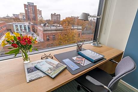 Situato a New Haven, a 9 minuti a piedi dal Municipio, lo Study at Yale, Study Hotels offre sistemazioni con biciclette gratuite, parcheggio privato, centro fitness e bar. Questo hotel a 4 stelle offre il servizio in camera, una reception aperta 24 ore su 24 e la connessione WiFi gratuita. La struttura offre un servizio concierge e un deposito bagagli. L'hotel offre camere climatizzate con scrivania, cassaforte, TV a schermo piatto e bagno privato con doccia. Le camere dispongono di armadio. Presso lo Study at Yale, Study Hotels troverete un ristorante di cucina americana. Su richiesta, potrete anche richiedere opzioni vegetariane, senza latticini e vegane. A vostra disposizione anche uno snack bar e un'area business. La Yale University dista 15 minuti a piedi dalla struttura, mentre lo Yale Bowl si trova a 3,2 km. L'aeroporto di Tweed-New Haven dista 7 km.
