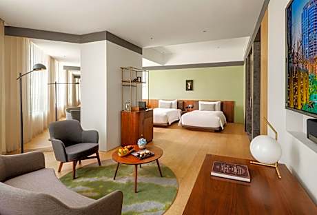 Boasting a fitness center, a bar and 2 restaurants, The Sukhothai Shanghai is located in Jingan District and is 0.7 mi from People's Square. This property is set a short distance from attractions such as Pedestrian Street of East Nanjing Road. The accommodations offers a 24-hour front desk and a concierge service for guests. Xintiandi is 0.9 mi from the hotel. The nearest airport is Shanghai Hongqiao International Airport, 8.1 mi from The Sukhothai Shanghai. The air-conditioned rooms are equipped with a flat-screen TV with satellite channels, a mini-bar, a coffee machine, a hot tub, free toiletries and a desk. Featuring a private bathroom with a bath and a hairdryer, rooms at the hotel also feature free WiFi, while some rooms here will provide you with a city view. At The Sukhothai Shanghai, every room is equipped with a seating area. A 24-hour fitness center is at guests' disposal during their stay. There are few dining options on the ground floor including URBAN Café & Lounge and La Scala Italian Restaurant. Continental and buffet breakfast options are available every morning on site.