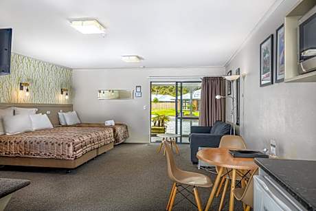 The Terrace offers 4-star accommodations with an on-site restaurant. Located in the center of Franz Josef, on a quiet street, The Terrace offers free unlimited WiFi and free onsite parking. Guests can enjoy views of snow-capped mountains and the Croz Glacier from the Terrace grounds, and from some rooms. Accommodations options include studio rooms and self-contained apartments. These spacious heated rooms are located on the ground floor and offer electric blankets, a flat-screen TV, an private bathroom and tea and coffee making facilities. Some rooms also feature spa baths and Kitchen facilities. All rooms are serviced daily. This property is close to Franz Josef’s free glow worm caves and is opposite the Kiwi Bird Center where guests can experience New Zealand’s national bird up close. Guests have access to shared laundry and barbecue facilities with outdoor furniture. The tour desk can organize a range of activities, including hikes, Kayaking, horse treks, glacier walks and discounted helicopter flights or restaurant deals.