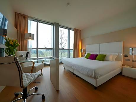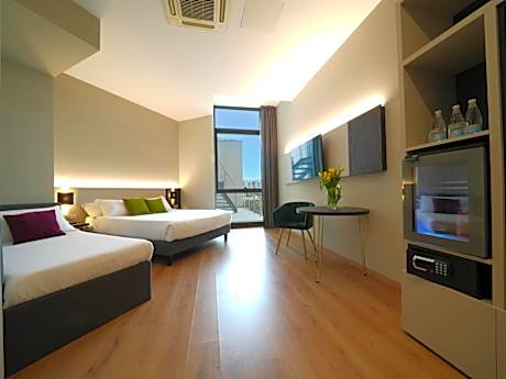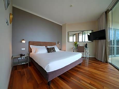 Elegant room with modern furnishings and parquet floors. Offers free WiFi, air conditioning, and a flat-screen TV.