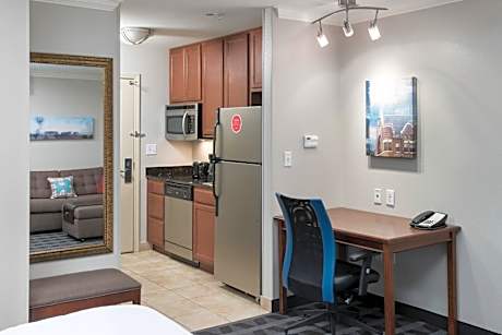 This pet-friendly hotel is a 15-minute walk from Bass Performance Hall and the Fort Worth Convention Center in downtown Fort Worth, Texas. It offers an outdoor pool and suites with kitchens. Located within a 5-minute drive of Bass Performance Hall and Sundance Square, TownePlace Suites Fort Worth Downtown offers an outdoor swimming pool and a fitness center. The property features accommodations with a flat-screen TV, free WiFi and work desk. The kitchen is complete with a stovetop, refrigerator and dishwasher. A buffet breakfast is served every morning and free parking is available. There is also a business center on site. The hotel is within a 7-minute drive of Fort Worth Stockyards, while Dallas/Fort Worth International Airport is 25 mi away.