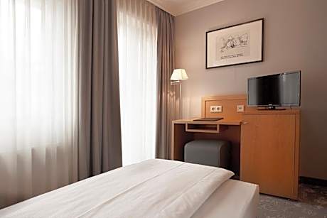 This hotel offers comfortable and convenient accommodations in the heart of Frankfurt’s Bahnhofsviertel. The main railway station and an underground station can be found just 820 feet away. As a guest at the Townhouse Hotel, you will enjoy an undisturbed night’s sleep in tastefully furnished rooms, as well as a cozy bar area and an excellent breakfast buffet. The helpful hotel staff will be ready to help you with sightseeing tips and business information. Frankfurt’s famous sights can be reached within minutes using the city’s efficient public transport system. Many attractions are accessible on foot, such as the Städel (art museum), which is just 1969 feet away. The Townhouse Hotel is an ideal base for business travelers. Frankfurt’s financial district and the Frankfurt Messe (trade fair) are both close by. The Breakfast is not included in the rate. It is possible to request it for a 10,00 Euro extra cost.
