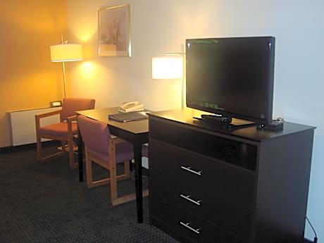 Travelodge by Wyndham Bracebridge is located in Bracebridge, within 14 miles of Lake Muskoka and 28 miles of Deerhurst Highlands Golf Course. The 2-star hotel has air-conditioned rooms with a private bathroom and free WiFi. The hotel features family rooms. Every room has a desk and a TV, and certain units at the hotel have a patio. The reception at Travelodge by Wyndham Bracebridge can provide tips on the area. Santa s Village is 3.4 miles from the accommodation, while Muskoka Zip Lines & Aerial Park is 5 miles away.