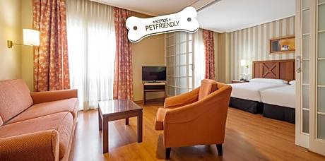 Ilunion Alcora Sevilla is located in San Juan de Aznalfarache, 10 minutes' drive from the old town and offers a regular transfer service to Seville city center. It has a seasonal outdoor pool and a 9.8 ft² terrace with city views. The air-conditioned rooms include TV and a work desk. Ilunion Alcora Sevilla offers family rooms and adapted rooms for disabled guests. Some rooms have a balcony. Free WiFi is available throughout. There is an à la carte restaurant and a cafeteria. Free outdoor public parking is offered on site and you can enjoy free access to a nearby golf course. The hotel is in the residential district of Aljarafe, with easy access to the A-49 and SE-30 motorways. The building features a large reception hall with an impressive glass dome. You will also find newspapers and free WiFi throughout the property. The hotel offers regular transfers from Monday to Sunday to the nearest metro stop, which connects in 7 minutes with the historic center of the city. Round trip price €1.00 per person per day. License Number(s): H/SE/0081