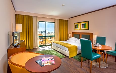 The Vila Galé Atlântico Hotel offers palm-framed apartment accommodations just 984 feet from Praia da Galé. The hotel features a well-equipped health club and swimming pools for adults and children. All Atlantico’s rooms come furnished with air conditioning, satellite TV and a kitchenette. Some include a balcony overlooking the resort’s gardens. Á la carte dinner or buffet with continental dishes are available. Casa de Santa Vitória Alentejo wines and cocktails prepared with fresh fruit can be tasted at the bars. Vila Galé’s spa features a heated indoor pool, hot tub and Turkish bath. For younger guests, there is also a shallow outdoor pool, a children’s playground and a mini-club. The parents can train at the gym, or sunbathe on the poolside deck. Other activities nearby include Herdade dos Salgados Golf Course, just 1.2 mi away, and tennis courts at 656 feet of the hotel. Faro International Airport is 30 mi away.