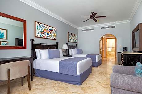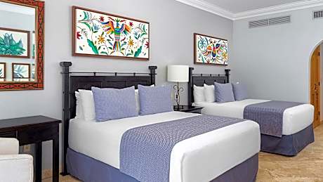 This 4-star luxury hotel in Nuevo Vallarta is located on the beaches of Banderas Bay. This beach resort features a full-service spa, gourmet Mexican restaurant and a multi-level lagoon-style pool. All rooms at the Villa La Estancia Nuevo Vallarta Ultra Inclusive Beach Resort & Spa offer are furnished in Spanish Colonial décor and have a private balcony overlooking the bay. The marble bathrooms include bathrobes and deluxe toiletries. A flat-screen cable TV is also provided. La Casona is a formal restaurant located at the Nuevo Vallarta Villa La Estancia Beach Resort and is open all day. A casual lunch is available at the poolside La Parilla.