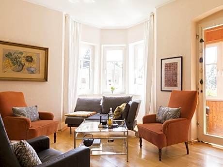 Located in Bad Steben and within 29 miles of Hohenwarte lake, Villa Siegfried has a terrace, non-smoking rooms, and free WiFi. Guests can enjoy garden views. The rooms at the hotel come with a seating area and a flat-screen TV with satellite channels. Rooms contain an electric tea pot and a private bathroom with a shower and free toiletries, while certain rooms come with a kitchen equipped with a fridge. Guest rooms have a desk. A continental, Full English/Irish or vegetarian breakfast is served at the property. You can play tennis at this 3-star hotel, and the area is popular for hiking and skiing. Leipzig/Halle Airport is 87 miles from the property.