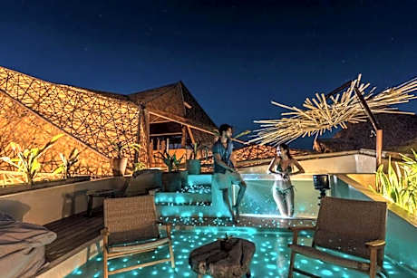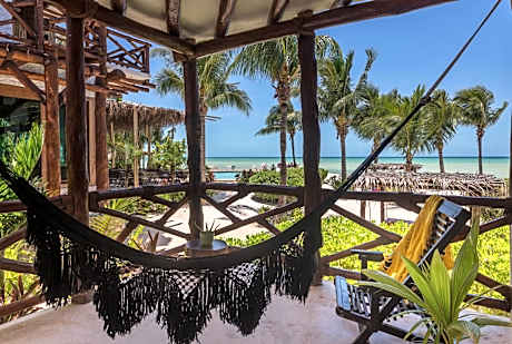 Villas Flamingos is a tropical beachfront property located within the Yum Balam Natural Reserve on Holbox Island, surrounded by the Caribbean Sea. It features a pool and a bar-restaurant which serves a free continental breakfast. Villas Flamingos has bungalow-style accommodations next to the ocean. Each room has a balcony with hammocks and a private bathroom. The hotel has scuba diving, kayaking and snorkeling activities for an extra charge. There are regular ferries from the island to the mainland town of Chiquilá, which is around a 90-minute drive from Cancun International Airport.