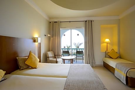 This hotel is located on a 9-hectare plot along one of the most beautiful beaches in Djerba. It lies just 10 km from Midoun, 10 minutes from shopping venues and 15 minutes by car from the nearest nightspots, the bowling alley and the casino. Houmt Souk is 25 km away and it is 32 km to Djerba International Airport. Renovated in 2010, this family-friendly beach hotel comprises a total of 279 well-equipped rooms and 38 apartments. Facilities on offer to guests at this air-conditioned establishment include a lobby area with a 24-hour reception and check-out service, a currency exchange facility, lift access, a hairdressing salon and a games room. The younger guests can let off steam at the kids' club and refreshment and relaxation for the grown ups is available at the bar, pub and disco. Guests have a restaurant and conference facilities at their disposal. They can also take advantage of the room and laundry services (both for an additional fee) and there is parking available for those arriving by car. It is also possible to hire bicycles on the premises (charges apply). Hotel rooms are equipped with a range of amenities and enjoy views of the swimming pool, the garden or the sea. All come with a private bathroom with a hairdryer and offer a double bed. They are equipped with a direct dial telephone, satellite TV, a safe (charges apply) and a minibar. Furthermore, individually regulated air conditioning and heating are provided in all accommodation as standard. All rooms feature either a balcony or a terrace.