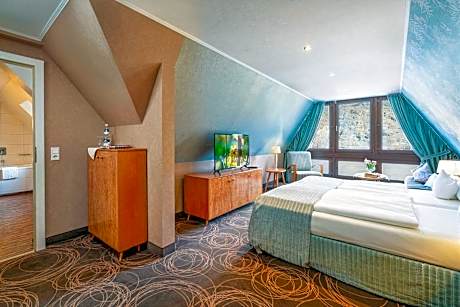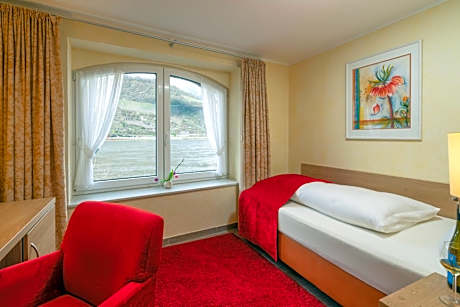 This family-friendly hotel on the Rhine offers great views and regional cuisine. Weinhotel Landsknecht is a 5-minute drive from Sankt Goar and the Lorelei rock, and 12 minutes from the A61 motorway. All guests receive a free bottle of mineral water on arrival at the 3-star Weinhotel Landsknecht. Most rooms are air-conditioned and offer direct views of the River Rhine. The nonsmoking Landsknecht provides a breakfast buffet each morning. Local ingredients and wines are used in the restaurant. The large riverside terrace is open during warmer months. The Weinhotel Landsknecht provides rental bicycles for exploring the UNESCO-listed Middle Rhine region. Many vineyards, castles and pretty villages are nearby.
