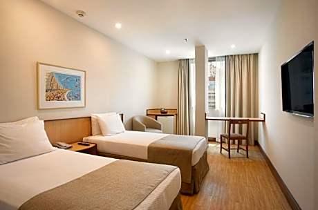 Located less then 984 feet from the lively Copacabana Beach, the Windsor Plaza Hotel offers a relaxing rooftop swimming pool and sauna. Free WiFi is available. Each room comes equipped with air conditioning, a flat-screen cable TV and mini-bar. The private bathroom is fitted with a shower and a hair dryer A well-equipped fitness center and an American bar are available on the hotel terrace. The 4-star Windsor Plaza also offers a restaurant in the lobby, where you can savor special Brazilian dishes on weekends. The knowledgeable staff can provide you with information about the city and tourist services. Cardeal Arcoverde metro station is 2625 feet from Windsor Plaza. Beach Volleyball Arena 984 feet away, and Santos Dumont Airport is at a distance of 4.3 mi.