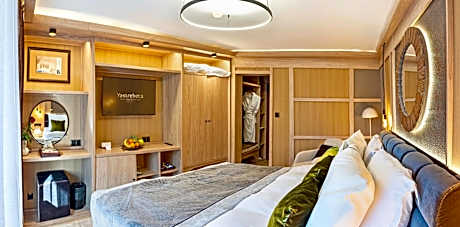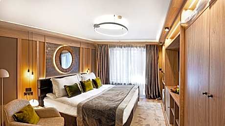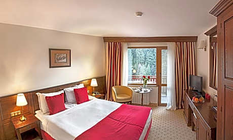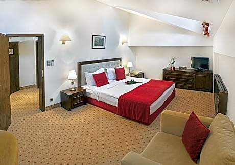This impressive spa hotel is located in the heart of the magnificent Rila mountain range, near the popular ski resort of Borovets, only a 50-minute drive away from Sofia. Hotel Yastrebets Wellness & Spa is located directly at the Yastrebets ski slope and features a gourmet restaurant and a piano bar. The rooms boast a terrace with stunning views over the ski slope or to the pine forest, plasma screen TVs and much more. Some units also feature a Finnish sauna. The spa facilities include a Finnish sauna, a steam bath, a herbal bath, a laconium, a Kneipp foot therapy and a sumptuous lounge with exotic showers. Guests can make use of a variety of cosmetic procedures and massages, Ayurveda treatments, a hot stone therapy and many others. The fitness area includes a 15-yard indoor swimming pool, an ice fountain, a solarium, a hot tub and a well-equipped gym. An open terrace reveals views to pine trees. License Number(s): С2-9ВП-64Л-Б1