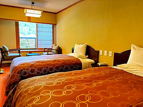 Great care is taken to ensure guests experience comfort through top-notch services and amenities. Remain linked during your visit by utilizing the complimentary internet access available. The ryokan offers complimentary parking for guests who arrive with their own mode of transport.Effortlessly plan your daily activities and travel requirements with luggage storage and safety deposit boxes provided by the front desk services. Need some relaxation? Your room features daily housekeeping to make your stay even more comfortable and enjoyable. The ryokan is completely smoke-free. In limited designated zones, smoking is exclusively permitted. Crafted for coziness, every guestroom provides an array of features, guaranteeing a tranquil night's sleep while maintaining the level of comfort. For an elevated experience at ryokan, select rooms are equipped with air conditioning to improve your stay.Expand your in-room entertainment choices with various amenities, such as television offered in certain accommodations. In select rooms, the ryokan offers visitors access to a refrigerator.Maintain your cleanliness and comfort using a hair dryer, toiletries, bathrobes and towels available in select guest restrooms. Begin your holiday mornings right with your essential cup of coffee, offered daily at the cafe on-site. Experience a fantastic evening effortlessly! Relish an entertaining night without venturing beyond the confines of the bar.Snack vending machines operate around the clock, providing you with easy access to treats regardless of the hour. Indulge in the numerous pursuits available at Yufuin Santoukan. Treat and spoil yourself by stopping at massage and sauna for a memorable experience.