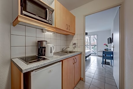 Zenitude Hotel&Residence L'Orée du Parc is a residence located between Divonne-les-Bains Golf course and the Lac de Divonne. It offers fully-furnished apartments. Apartments at Zenitude Hotel&Residence L'Orée du Parc are equipped with free WiFi and a TV. They are serviced by a lift, and some also have a private balcony. Breakfast is served each morning at Zenitude Hotel&Residence L'Orée du Parc. Guests can relax on the garden terrace. The residence also provides a laundry service.