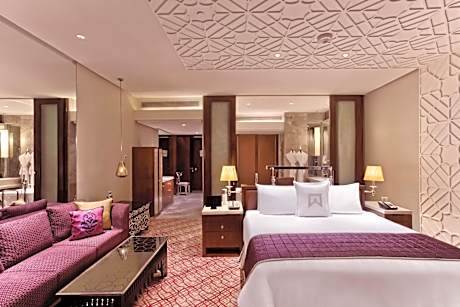 At ITC Kohenur, a Luxury Collection Hotel, Hyderabad, exceptional service and top-notch amenities create a memorable experience for guests.Complimentary internet access is available in the hotel to ensure you stay connected during your visit. Arrange your trips to and from the airport using the hotel's convenient transportation services booking. Discover the wonders of Hyderabad with ease by utilizing the services provided by taxi, car hire and shuttle. Complimentary parking is available for guests.Continuously receive the support you require through front desk amenities such as concierge service, express check-in or check-out and safety deposit boxes. Always look your best in your preferred attire with the dry cleaning service and laundry service provided at ITC Kohenur, a Luxury Collection Hotel, Hyderabad.Craving relaxation? In-room amenities such as 24-hour room service, room service and daily housekeeping allow you to maximize your time spent inside the room. Accommodations come equipped with all the conveniences required for a restful night's slumber. A selection of rooms feature blackout curtains and air conditioning to ensure your comfort and convenience. A few accommodations at ITC Kohenur, a Luxury Collection Hotel, Hyderabad also include unique design elements like a balcony or terrace. A few chosen rooms are equipped with television and cable TV to ensure guest amusement.In certain rooms, the hotel offers visitors access to a refrigerator, a coffee or tea maker and mini bar.ITC Kohenur, a Luxury Collection Hotel, Hyderabad offers a hair dryer, toiletries and bathrobes in the restrooms of specific accommodations. A delightful breakfast is the perfect way to begin your day, and at ITC Kohenur, a Luxury Collection Hotel, Hyderabad, you can always indulge in a scrumptious meal on-site. All adore a delightful cup of coffee! An on-site coffee shop ensures you can relish a cup of authentic, freshly-brewed coffee every morning -- or whenever you desire it.Allow your journey to be free from the pangs of hunger! On-site eateries offer delicious and accessible meal choices.An evening spent at hotel's bar can offer as much enjoyment as venturing out with your fellow travelers. At ITC Kohenur, a Luxury Collection Hotel, Hyderabad, guests can take pleasure in the delightful recreational amenities provided for their entertainment. Conclude your days in complete tranquility by paying a visit to massage, salon and spa for ultimate relaxation. At ITC Kohenur, a Luxury Collection Hotel, Hyderabad, a wide array of amenities guarantees a fulfilling experience throughout your visit. Make your holiday truly memorable by taking a rejuvenating plunge into the pool. At the hotel fitness center, you have the option to engage in your daily exercise routine or simply alleviate your jet lag by breaking a sweat.