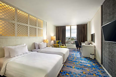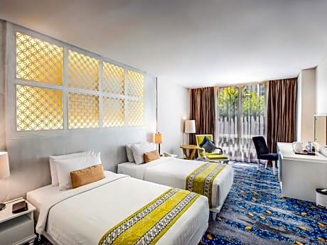 Jambuluwuk Malioboro Hotel Yogyakarta provides flawless service and all the necessary facilities for visitors.Stay connected with your associates, as complimentary Wi-Fi is available during your entire visit. To facilitate your arrival and departure, you can pre-book airport transfer services prior to checking in. The hotel offers taxi, car hire and shuttle amenities for your ease in navigating around Yogyakarta. When arriving by car, you'll be grateful for the on-site complimentary parking at hotel. The hotel offers reception amenities including concierge service, luggage storage and safety deposit boxes to ensure a comfortable stay for guests.Should you require assistance, the ticket service and tours can also aid in booking tickets and securing reservations at the finest shows and events in the vicinity. Whether it's an extended stay or simply needing fresh attire, dry cleaning service and laundry service provided by hotel ensures your cherished travel garments stay spotless and accessible. Your stay will be comfortable with the presence of 24-hour room service, room service and daily housekeeping as an in-room amenity for your relaxation and enjoyment.To ensure the well-being and convenience of all visitors, smoking is strictly prohibited throughout the entire hotel. Smoking is permitted solely in the specified smoking zones allocated by hotel.In order to ensure the utmost level of relaxation, the guestrooms feature an inviting design and are equipped with all basic necessities, creating a delightful stay experience. To ensure a pleasant stay, a selection of rooms at hotel come furnished with blackout curtains and air conditioning, all designed with your ease in mind. In select rooms, visitors can enjoy a touch of amusement with the availability of daily newspaper, television, in-room video streaming and cable TV for their entertainment needs. Within specific rooms, a refrigerator, bottled water, a coffee or tea maker and mini bar is conveniently available for your use.Understanding the significance of bathroom facilities in enhancing visitor contentment, hotel offers a hair dryer, toiletries and bathrobes within a few chosen chambers. Start your day stress-free at Jambuluwuk Malioboro Hotel Yogyakarta as breakfast is made available for you on the premises. How about kicking off each day of your getaway with a delicious cup of coffee? At the hotel, relish in the invigorating taste of a freshly brewed, excellent coffee.Various excellent meal offerings at hotel ensure that enticing and easily accessible options are constantly available.Visitors with specific dietary preferences can savor a variety of culinary styles at Jambuluwuk Malioboro Hotel Yogyakarta, featuring halal choices to accommodate their needs. Upon arrival, make sure to explore karaoke rooms and bar to experience enjoyable evening entertainment within the premises.Visitors staying at Jambuluwuk Malioboro Hotel Yogyakarta have the option to receive groceries in their room for meal preparation, courtesy of the unique service provided by the hotel.Within the hotel, discerning guests will also find on-site culinary facilities like BBQ facilities and shared kitchen to further cater to their needs.Throughout the day, engage in the entertaining activities available at Jambuluwuk Malioboro Hotel Yogyakarta.Make sure to discover the readily available beach at hotel.Unwind and conclude each day delightfully by stopping by massage, hot tub, spa and sauna, ensuring a soothing experience.Unwind by the pool at hotel and cherish a leisurely moment. Enjoy a refreshing beverage al fresco at hotel's poolside bar savoring your preferred concoction.Guests who enjoy maintaining their fitness regimen while on holiday can visit the fitness center provided by hotel.