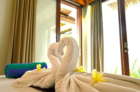 This spacious and air-conditioned one-bedroom villa features a private outdoor pool, separate dining area with a fully-equipped kitchenette. The bedroom is fitted with a wardrobe, flat-screen cable TV, DVD player, personal safe and an private bathroom featuring bath and shower facilities, hairdryer, and free toiletries.