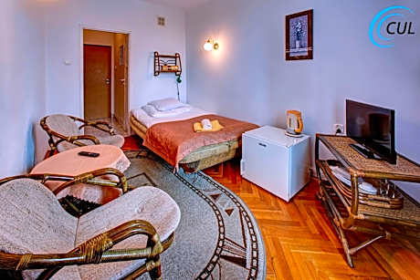 Jawor enjoys a location in Polańczyk, 29 miles from Chatka Puchatka and 4.3 miles from The Solina Dam. 21 miles from Skansen Sanok and 28 miles from Polonina Wetlinska, the property offers a terrace and barbecue facilities. There's an outdoor fireplace and guests can access free Wifi and free private parking. At the bed and breakfast, every unit comes with a wardrobe, a TV, a private bathroom, bed linen, and towels. Every room comes with a kettle, while some have a balcony. The rooms are equipped with heating facilities. For guests with children, the bed and breakfast features an indoor play area. Guests at Jawor can enjoy billiards on-site, or hiking in the surrounding area. Bieszczady Forest Railway is 20 miles from the accommodation, while Sanok Castle is 21 miles from the property. Rzeszów-Jasionka Airport is 72 miles away.