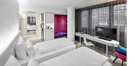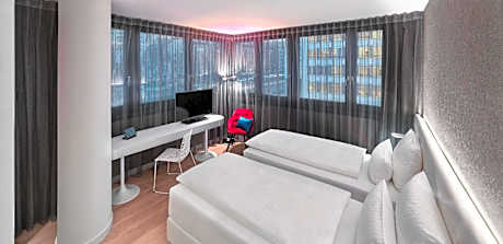 The lifestyle hotel Jaz in the City Stuttgart is directly next to the Milaneo shopping center. The Königstraße is 0.9 mi away and the Stadtbibliothek Underground Station is 492 feet from Jaz in the City Stuttgart. This casual design hotel shines with a new mash-up of music, art and culinary delights guided by the inimitable Stuttgart "Way of Life". Guest rooms comes with air conditioning, a flat-screen TV with cable channels, a fridge, a coffee machine and a desk. The rooms include a private bathroom with a chic rain shower, free toiletries and a hair dryer. All guest rooms include a wardrobe. The modern Restaurant Rhythms Bar & Kitchen features dry aged meat and steaks. The trendy Wolfram Bar & Terrace with rooftop terrace offers cocktails, wines, exclusive whiskey and gin selection snacks with views over Stuttgart on Balinese sky beds. Work out in the gym, which is open 24 hours a day, and relax in the welness area with its 2 saunas and a steam room.
