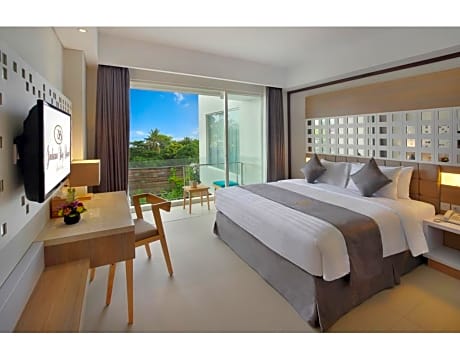 Jimbaran Bay Beach Resort & Spa by Prabhu offers top-notch services and amenities, ensuring guests experience utmost comfort. Share your photos and respond to emails at your convenience, thanks to the free Wi-Fi internet access offered by resort. Should you require transportation to or from the airport, resort is able to organize it prior to your arrival date.Taxi, car hire and shuttle offerings at the resort simplify arranging your excursions, explorations, and additional activities in Bali. Visitors can take advantage of complimentary parking directly at the resort. Reception services such as concierge service, luggage storage and safety deposit boxes are available to accommodate your requirements.Securing top-notch tickets and snagging sought-after dining reservations become effortless, thanks to the resort's ticket service and tours. Traveling with minimal baggage is achievable at Jimbaran Bay Beach Resort & Spa by Prabhu, as the resort's dry cleaning service and laundry service ensures your garments stay fresh. Room amenities like 24-hour room service, room service and daily housekeeping contribute to making a perfect selection for your stay. The resort maintains a completely smoke-free zone, providing a breathable atmosphere. Smoking is limited to specified smoking zones.Each accommodation at Jimbaran Bay Beach Resort & Spa by Prabhu is thoughtfully created and adorned to provide visitors with a comfortable, home-like atmosphere.In certain rooms, the resort offers blackout curtains and air conditioning for guest convenience and satisfaction. At Jimbaran Bay Beach Resort & Spa by Prabhu, the uniquely tailored rooms provide a configuration choice resembling a balcony or terrace. In select rooms, guests at the resort can enjoy top-notch in-room entertainment with television and cable TV available for their convenience. Rest assured, in a few chosen rooms, you will find the convenience of a refrigerator, bottled water, a coffee or tea maker, instant coffee, instant tea and mini bar at your disposal.Maintain your cleanliness and comfort using a hair dryer, toiletries and bathrobes available in select guest restrooms.Immerse yourself in the executive lounge, where exceptional amenities and lavish surroundings await you. Begin your holiday on a high note. At Jimbaran Bay Beach Resort & Spa by Prabhu, your mornings are greeted with a delightful, free breakfast. Experience the delight of a fresh morning by savoring excellent coffee at the cafe situated within resort.Should you prefer not to venture out for a meal, the enticing culinary choices at resort are always available for your satisfaction.Experience an unforgettable evening with your fellow travelers just a short distance away, at resort's bar.Visitors who enjoy preparing their own culinary delights will appreciate the presence of an on-site BBQ facilities and shared kitchen at this location. Jimbaran Bay Beach Resort & Spa by Prabhu provides a superb assortment of leisure amenities for guests to enjoy. Make certain to allocate time for discovering the shoreline, easily reachable right from the resort. Unwind after a long day by stopping by massage, spa and sauna to rejuvenate your senses.Each day at resort, immerse yourself in the invigorating waters of the pool, perfect for a rejuvenating plunge or a series of revitalizing laps. Bypass the formal attire and choose a laid-back mixed drink or brew at resort's waterside lounge. For individuals who don't want to skip their exercise routine, visiting the resort fitness center ensures you maintain your vitality and wellness.
