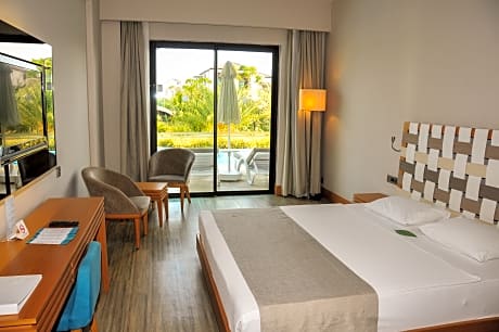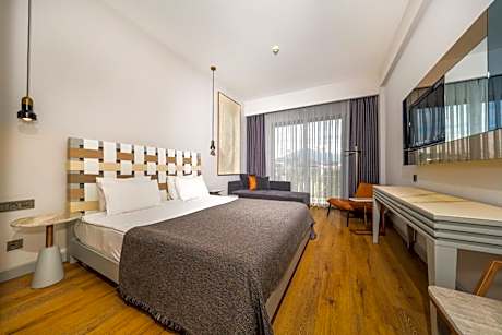 Located in Fethiye, Jiva Beach Resort offers all-inclusive service. Sat in a 115 ft² area, the property features a natural lake along with 5 swimming pools offering an activity, silent and slides pool. Numerous activities including billiards, darts and table tennis are available on site. Free WiFi and a 24-hour front desk are available in the property. All rooms at Beach Resort Jiva come with modern decoration. Rooms are fitted with an 32" LED TV, mini-bar and a safe box. Featuring a rain shower, private bathrooms come with a hairdryer and free toiletries. Some rooms have direct access to the pool as well. You can enjoy buffet breakfast, lunch and dinner at the main restaurant. There are also 2 additional restaurants and a snack restaurant serving a variety of delicious dishes. Pastries are available 24 hours in the patisserie. Pool bar offers ice cream, snacks and refreshments 24 hours, within all-inclusive concept. Spa facilities include a Turkish bath, sauna and fitness room; massage services are also provided. Daily entertainment and night shows are organized on site by a professional staff. Guests can dance and enjoy the music the disco. 400-people capacity amphitheater is available for entertainment and live performances.There is also a games room. Paragliding is very popular in this area. Babadag where you can do paragliding is only 50-minute drive from Jiva Beach Resort. Only 1.9 mi to Fethiye city center, Jiva Beach Resort is less than 12 mi to the Oludeniz Beach (Blue Lagoon). Dalaman Airport is 28 mi away. Free private parking is available on site.