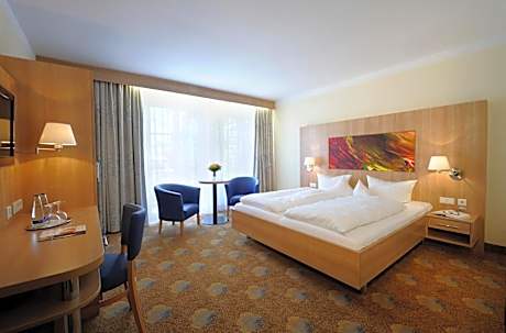 Located in Bad Füssing, 1.1 miles from Eins Thermal Baths, Johannesbad Hotel Füssinger Hof provides accommodations with free bikes, private parking, a garden and a shared lounge. This 3-star hotel offers free shuttle service and a tour desk. The hotel has a terrace, a 24-hour front desk, and free WiFi is available throughout the property. Guest rooms at the hotel are equipped with a seating area, a flat-screen TV with satellite channels, a safety deposit box and a private bathroom with a hairdryer and bathrobes. The rooms include a desk. Guests at Johannesbad Hotel Füssinger Hof can enjoy a buffet breakfast. At the accommodation you'll find a restaurant serving Local cuisine. Vegetarian, dairy-free and vegan options can also be requested. Guests at Johannesbad Hotel Füssinger Hof will be able to enjoy activities in and around Bad Füssing, like cycling. Johannesbad Thermal Baths is 3.1 miles from the hotel, while Wohlfuhl Thermal Baths is 12 miles away.