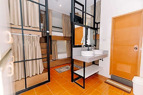 Providing free toiletries, this dormitory room includes a private bathroom with a shower, a bidet and a hairdryer. The air-conditioned dormitory room provides a flat-screen TV with cable channels, a wardrobe, an electric kettle, a tiled floor as well as an inner courtyard view. The unit offers 6 beds.