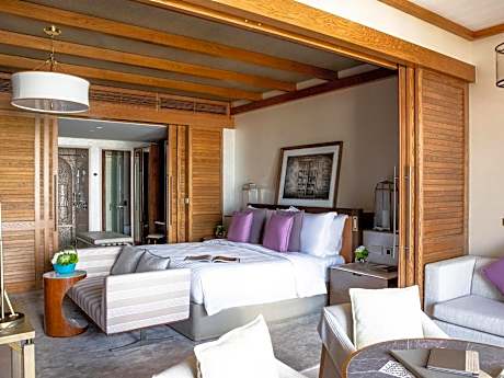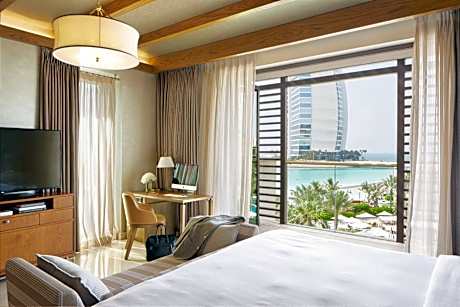 Jumeirah Al Naseem is a luxurious 5-star beachfront hotel, nestled along a 1.2 mi stretch of private beach. Its extensive landscaped grounds feature picturesque canal-style waterways. The spacious rooms offer furnished private balconies with views of either the Arabian Gulf or the hotel’s lush grounds. For wellness, the hotel features a private sandy beach where guests can unwind, complete with complimentary fresh fruit and cool towels. The Talise Spa features overwater treatment rooms, providing a serene escape. Guests also have complementary access to the resort's fitness facilities at JClub. Families may enjoy the Kids Club with separate pools for adults and children. Nature enthusiasts can explore the turtle lagoon, adding a touch of wonder to their stay. Guests also have complementary access to Wild Wadi Waterpark. Dining options abound. Additionally, guests can take advantage of complimentary shuttle services to nearby attractions such as Jumeirah Beach Hotel and Mall of the Emirates. Plus, the hotel’s proximity to Souk Madinat Jumeirah and Dubai Internet City makes it a convenient choice for both leisure and business travelers. Free parking is available at all properties of the resort, ensuring a hassle-free experience.