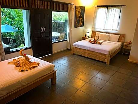 Located just a 10-minute drive from central Ubud, Junjungan Suite offers a great escape from the hustle and bustle featuring an outdoor pool. Surrounded by lush rice fields and located near the river. It takes about a 10-minute drive from the property to Ubud's Sacred Monkey Forest, and Bali Denpasar International Airport is 27 miles away or around 2 hours by car. Each room at Junjungan Suite is air-conditioned, and fitted with mosquito nets, a wardrobe, and a balcony. There is also an private bathroom featuring shower facility and free toiletries. Fresh towels and bed linens are also provided. Some rooms offer a kitchen and pool view. Guests staying at Junjungan Suite will find a 24- hour front desk where the friendly staff can assist to arrange car hire, airport shuttle service, bicycle rental, laundry requests, babysitting service relaxing massages, and activity like cycling at additional charges. As for dining option, the attentive staff can help with grocery deliveries. Alternatively, guests can order their meals from the room service.