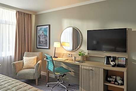 Leonardo Royal Hotel Oxford is only 5 minutes’ drive from Oxford’s historic and picturesque center and 0.5 miles from the A34. This 4-star hotel has spacious bedrooms, each featuring a Dream bed, a TV, tea/coffee making facilities, a work area and an individual private bathroom. Room service is available. Breakfast Buffet will be served in the Restaurant. Leo’s Bar and Lobby is open throughout the day serving a delicious light menu. It’s a perfect place to meet and relax whether with colleagues, friends or family, offering a selection of freshly prepared meals and drinks. Our Marco Pierre White Steakhouse is open Monday to Saturday evenings, with reservations recommended. Car parking is available, and both Oxford Train Station and the M40 can be reached in 10 minutes’ car journey.