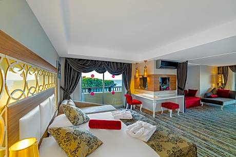 Experience an abundance of unparalleled facilities and features at Justiniano Deluxe Resort. Maintain seamless communication using the complimentary Wi-Fi at hotel.Effortlessly arrange transportation to and from the airport using the hotel's airport transfer services. Discovering Alanya becomes even more accessible through the taxi and car hire amenities provided at the hotel.For visitors traveling by automobile, complimentary parking is available.During your stay at this fantastic hotel, the attentive front desk personnel can provide you with a range of amenities such as luggage storage and safety deposit boxes.During chilly days and evenings, the hotel provides an in-house fireplace to ensure your warmth.For extended visits or whenever required, the laundry service ensures your preferred travel garments remain fresh and accessible. Craving relaxation? Make the most of your stay at the Justiniano Deluxe Resort with convenient amenities like room service and daily housekeeping at your disposal. For all your minor, last-minute requirements, the convenience stores can promptly cater to them, eliminating the need to venture out. For visitors wishing to smoke, designated smoking zones can be found.At Justiniano Deluxe Resort, every guestroom is provided with convenient amenities and fittings to ensure a comfortable stay. Enhance your experience at hotel with the knowledge that certain rooms are equipped with linen service, blackout curtains and air conditioning for your convenience. A few accommodations within Justiniano Deluxe Resort offer unique design elements such as a balcony or terrace. Certain rooms boast in-room amusement features such as television, in-room video streaming and cable TV, offering guests an enjoyable stay. In select rooms within the hotel, a coffee or tea maker, bottled water, instant coffee, instant tea and mini bar is available to cater to your requirements when desired. It is worth noting that certain guest bathrooms feature a hair dryer, toiletries and bathrobes for your convenience. Begin your day carefree at Justiniano Deluxe Resort, as complimentary breakfast is offered for your convenience.Begin your day feeling refreshed and invigorated as you enjoy a delightful cup of quality coffee available at the cafe situated within the hotel.At the hotel, an assortment of easily accessible and delicious meal choices are available to satisfy your appetite whenever it strikes.At Justiniano Deluxe Resort, they are committed to catering to your unique requirements. They offer a variety of meal choices, encompassing halal alternatives for those with special dietary preferences.Create unforgettable moments with your fellow voyagers just steps away, at hotel's karaoke rooms, bar and nightclub, for a delightful evening together. During your stay at hotel, an array of engaging activities and amenities guarantees a delightful experience.During your stay, don't forget to allocate some moments to experience the readily available shoreline. Conclude your holiday perfectly with a visit to massage, salon, steam room, spa and sauna on your final days.Be sure to drop by the pool at hotel at least once during your stay.At Justiniano Deluxe Resort, utmost care is taken to ensure guests' comfort. Relish your preferred beverage in your swimwear by the hotel's poolside bar. Discover the fitness amenities at hotel to maintain your health and strength during your getaway.
