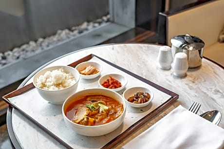 Great care is taken to ensure guests experience comfort through top-notch services and amenities.Remain linked during your visit by utilizing the complimentary internet access available. Prior to your check-in date, you can arrange airport transportation services, guaranteeing a seamless and efficient experience for both arrival and departure. Parking is accessible, supplied by the hotel for guests who arrive by car. Effortlessly plan your daily activities and travel requirements with concierge service, luggage storage and safety deposit boxes provided by the front desk services. Repeatedly enjoy your best-loved attire with the aid of the laundry service available at JW Marriott Dongdaemun Square Seoul. During leisurely days and evenings, in-room amenities such as room service and daily housekeeping enable you to maximize your stay in the room. The hotel is completely smoke-free. Crafted for coziness, every guestroom provides an array of features, guaranteeing a tranquil night's sleep while maintaining the level of comfort. For certain chosen rooms, guests can enjoy in-room amusement like television and cable TV as a part of their stay. Rest assured that your hydration needs will be met, as some guestrooms are equipped with a coffee or tea maker, bottled water, instant tea and mini bar. JW Marriott Dongdaemun Square Seoul offers a hair dryer and bathrobes in the restrooms of specific accommodations. Each morning at JW Marriott Dongdaemun Square Seoul, a scrumptious, homemade breakfast kick-starts the day.