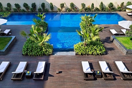 JW Marriott Hotel New Delhi Aerocity provides flawless service and all the necessary facilities for visitors.Stay connected with your associates, as complimentary Wi-Fi is available during your entire visit.To facilitate your arrival and departure, you can pre-book airport transfer services prior to checking in.The hotel offers taxi, car hire and shuttle amenities for your ease in navigating around New Delhi and NCR. When arriving by car, you'll be grateful for the on-site complimentary parking at hotel. The hotel offers reception amenities including concierge service, express check-in or check-out, luggage storage and safety deposit boxes to ensure a comfortable stay for guests. Should you require it, the tours can even assist you in booking tickets and securing reservations for the finest shows and events in the vicinity.Whether it's an extended stay or simply needing fresh attire, dry cleaning service and laundry service provided by hotel ensures your cherished travel garments stay spotless and accessible.Your stay will be comfortable with the presence of 24-hour room service, room service and daily housekeeping as an in-room amenity for your relaxation and enjoyment.Need something at the last minute? The convenience stores has you covered, ensuring your requirements are met without any inconvenience. Smoking is permitted solely in the specified smoking zones allocated by hotel. In order to ensure the utmost level of relaxation, the guestrooms feature an inviting design and are equipped with all basic necessities, creating a delightful stay experience.Selected rooms offer in-room amusement like cable TV as a source of entertainment for guests to enjoy.Within specific rooms, instant tea and mini bar is conveniently available for your use. Understanding the significance of bathroom facilities in enhancing visitor contentment, hotel offers a hair dryer and bathrobes within a few chosen chambers. Start your day stress-free at JW Marriott Hotel New Delhi Aerocity as breakfast is made available for you on the premises. How about kicking off each day of your getaway with a delicious cup of coffee? At the hotel, relish in the invigorating taste of a freshly brewed, excellent coffee. Various excellent meal offerings at hotel ensure that enticing and easily accessible options are constantly available.Visitors with specific dietary needs can enjoy various culinary choices at JW Marriott Hotel New Delhi Aerocity, providing kosher and halal alternatives.Upon arrival, make sure to explore bar and nightclub to experience enjoyable evening entertainment within the premises.Throughout the day, engage in the entertaining activities available at JW Marriott Hotel New Delhi Aerocity. Unwind and conclude each day delightfully by stopping by massage, salon, steam room, spa and sauna, ensuring a soothing experience.Unwind by the pool at hotel and cherish a leisurely moment.Enjoy a refreshing beverage al fresco at hotel's poolside bar savoring your preferred concoction. Guests who enjoy maintaining their fitness regimen while on holiday can visit the fitness center provided by hotel.