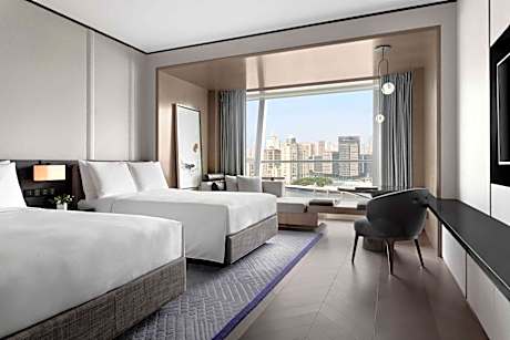 At JW Marriott Marquis Hotel Shanghai Pudong, exceptional service and top-notch amenities create a memorable experience for guests. Amenities at car hire offered by JW Marriott Marquis Hotel Shanghai Pudong simplify the organization of your excursions, tourist activities, and other adventures in Shanghai.For guests with their own vehicle, parking facilities are provided. Continuously receive the support you require through front desk amenities such as concierge service and safety deposit boxes.At the hotel, utilize the convenient dry cleaning service to maintain your preferred travel attire fresh, allowing you to pack lighter. Craving relaxation? In-room amenities such as 24-hour room service, room service and daily housekeeping allow you to maximize your time spent inside the room.Accommodations come equipped with all the conveniences required for a restful night's slumber.A number of rooms feature cable TV for guest amusement and enjoyment. In certain chosen rooms, instant tea is conveniently available for your use. In the hotel, certain guest bathrooms come equipped with essential bathroom amenities, such as a hair dryer and bathrobes, ensuring a comfortable stay for guests. A delightful breakfast is the perfect way to begin your day, and at JW Marriott Marquis Hotel Shanghai Pudong, you can always indulge in a scrumptious meal on-site. All adore a delightful cup of coffee! An on-site coffee shop ensures you can relish a cup of authentic, freshly-brewed coffee every morning -- or whenever you desire it.Allow your journey to be free from the pangs of hunger! On-site eateries offer delicious and accessible meal choices.An evening spent within the hotel's karaoke rooms, bar and nightclub may prove to be just as entertaining as venturing out with your fellow adventurers.Are you inclined to prepare your own dishes? You will surely appreciate having the on-site BBQ facilities available. At JW Marriott Marquis Hotel Shanghai Pudong, guests can take pleasure in the delightful recreational amenities provided for their entertainment.Conclude your days in complete tranquility by paying a visit to massage, hot tub, steam room, spa and sauna for ultimate relaxation. At JW Marriott Marquis Hotel Shanghai Pudong, a wide array of amenities guarantees a fulfilling experience throughout your visit. Make your holiday truly memorable by taking a rejuvenating plunge into the pool.At the hotel fitness center, you have the option to engage in your daily exercise routine or simply alleviate your jet lag by breaking a sweat.
