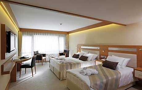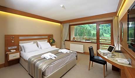 Located in a secluded area in Ayder Plateau, Kackar Resort Hotel is surrounded by pine forests and towering mountains. The hotel offers modern rooms with a seating area and free Wi-Fi access. Free private parking is available on site. All units at Hotel Kackar Resort feature a fridge and mountain views. The private bathroom comes with bath or shower, hairdryer and slippers. A flat-screen satellite TV is also fitted in rooms. Relaxation activities include the sauna, massage treatments and Turkish bath. You can also work out at the fitness center or go fishing, rock climbing, rafting at leisure. Kids can have fun in the children’s playground. Kackar Resort Hotel has a terrace to relax after a busy day. Everyday breakfast is served buffet style. You can also enjoy lunch and dinner at the à la carte restaurant, and sample a variety of dishes from both traditional and international cuisine. Shuttle services to Trabzon Airport, which is 102 mi away, can be arranged upon request, at an additional charge.