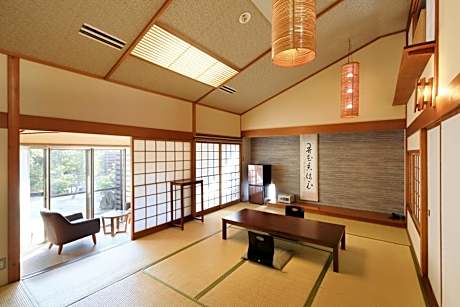 The hot tub and private open-air bath are the special features of this quadruple room. The quadruple room features air conditioning, tatami, as well as a private bathroom boasting a bath and a shower. The quadruple room offers a safe deposit box, an electric kettle, a sofa, yukata, as well as a flat-screen TV. The unit has 1 bed and 2 futons.
