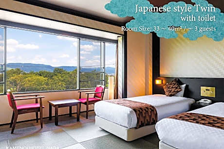 KAMENOI HOTEL NARA provides flawless service and all the necessary facilities for visitors.Stay connected with your associates, as complimentary Wi-Fi is available during your entire visit. The ryokan offers taxi and shuttle amenities for your ease in navigating around Nara. When arriving by car, you'll be grateful for the on-site complimentary parking at ryokan. The ryokan offers reception amenities including luggage storage and safety deposit boxes to ensure a comfortable stay for guests. The ryokan's daily housekeeping ensures an excellent option for your stay.To ensure the well-being and convenience of all visitors, smoking is strictly prohibited throughout the entire ryokan.Smoking is permitted solely in the specified smoking zones allocated by ryokan.In order to ensure the utmost level of relaxation, the guestrooms feature an inviting design and are equipped with all basic necessities, creating a delightful stay experience. To ensure a pleasant stay, a selection of rooms at ryokan come furnished with linen service, blackout curtains and air conditioning, all designed with your ease in mind. In select rooms, visitors can enjoy a touch of amusement with the availability of television and cable TV for their entertainment needs.Within specific rooms, a refrigerator, a coffee or tea maker, bottled water and instant tea is conveniently available for your use. Understanding the significance of bathroom facilities in enhancing visitor contentment, ryokan offers a hair dryer, toiletries and towels within a few chosen chambers. Start your day stress-free at KAMENOI HOTEL NARA as breakfast is made available for you on the premises. Various excellent meal offerings at ryokan ensure that enticing and easily accessible options are constantly available.Upon your arrival, don't miss experiencing karaoke rooms for enjoyable in-house evening entertainment. Throughout the day and night, guests can enjoy light refreshments with the ryokan offering vending machines.