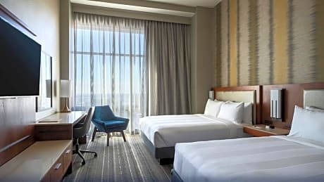 Kansas City Marriott Downtown puts business and leisure travelers in the heart of a lively downtown. Guests are just steps away from the Kansas City Convention Center and a quick walk from the Power & Light District, with shopping, great restaurants, and vibrant nightlife The air-conditioned rooms of Marriott Downtown Kansas City are decorated with warm colors. All rooms have a work desk, coffee and tea making facilities, and granite bathrooms. Room service is available. Guests can choose from a wide range of dining options, including gourmet American cuisine at Metropolitan KC Restaurant. The Coffee Kiosk serves specialty coffees, breakfast items, sandwiches and salads.. Kansas City Marriott Downtown also offers dry cleaning facilities, a gift shop, and a concierge service. Kansas City Marriott is located less than a 5-minute walk from the Lyric Opera, the Music Hall, the Midland Theater, and Bartle Convention Center.