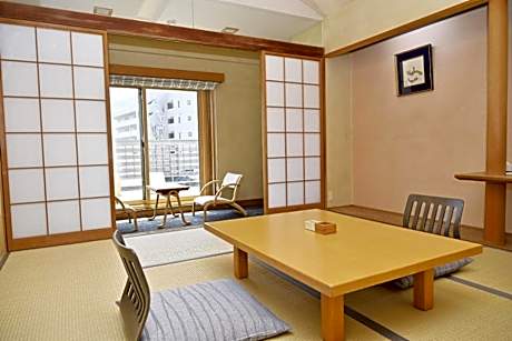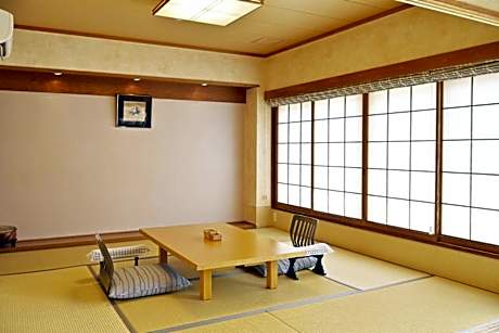 The quadruple room features air conditioning, tatami, as well as a shared bathroom boasting a hairdryer and slippers. The quadruple room provides a safe deposit box, an electric kettle, yukata, heating, as well as a flat-screen TV. The unit has 4 futons.