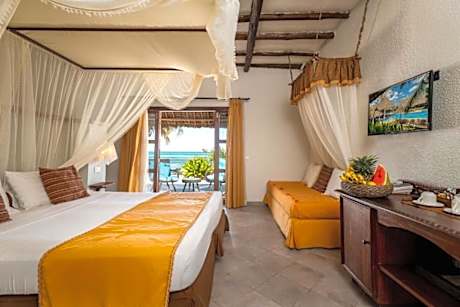 Located along a sandy, palm-fringed beach, Karafuu Beach Resort & Spa features three swimming pools and tennis courts, a spa, fitness center and floating restaurant. There is also a scuba diving center. The spacious, air-conditioned rooms and suites all come with a balcony and Zanzibari-style décor. They are equipped with a safety deposit box and mini-bar. Each private bathroom includes a hairdryer and shower. Guests can relax at SAMAWATI Spa, by the beach or in one of the swimming pools. They can also enjoy the games room, which offers billiards, table tennis, board games, darts and playing cards. There are three restaurants with a variety of buffet and a la carte menus. Tours and excursions can be arranged by the resort. Karafuu is just a 2-minute drive from Pingwe Village and 5 minutes’ drive from Kae Beach. Stone Town and Zanzibar International Airport are both 40 mi from the resort.
