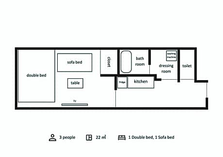 The apartment features air conditioning, a washing machine, as well as a private bathroom boasting a bath and a shower. The well-fitted kitchenette has a refrigerator, kitchenware, a microwave and an electric kettle. This apartment offers heating and a flat-screen TV. The unit has 1 bed.