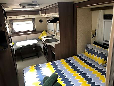 This mobile home comes with 1 living room, 1 separate bedroom and 2 bathrooms with a shower and free toiletries. Guests can make meals in the kitchenette that features a stovetop, a refrigerator, kitchenware and a microwave. Boasting a terrace with garden views, this mobile home also features air conditioning and a flat-screen TV. The unit has 2 beds.