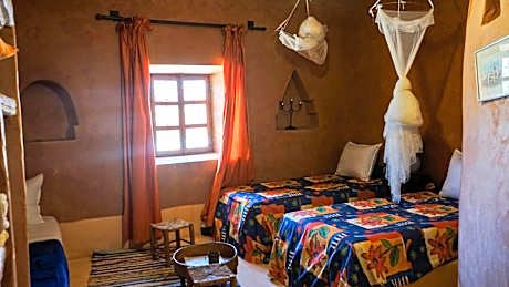 Experience an abundance of unparalleled facilities and features at Kasbah Tigmi El Janoub.Maintain seamless communication using the complimentary Wi-Fi at hotel. Effortlessly arrange transportation to and from the airport using the hotel's airport transfer services.Discovering Ait Benhaddou becomes even more accessible through the taxi, car hire and shuttle amenities provided at the hotel.For visitors traveling by automobile, complimentary parking is available.During your stay at this fantastic hotel, the attentive front desk personnel can provide you with a range of amenities such as express check-in or check-out and luggage storage.In search of city's top entertainment, seek assistance at the hotel's ticket service and tours for reservations.For extended visits or whenever required, the laundromat ensures your preferred travel garments remain fresh and accessible.Craving relaxation? Make the most of your stay at the Kasbah Tigmi El Janoub with convenient amenities like room service and daily housekeeping at your disposal. Kindly note that smoking is prohibited in the hotel to ensure fresher air for all visitors. For visitors wishing to smoke, designated smoking zones can be found.At Kasbah Tigmi El Janoub, every guestroom is provided with convenient amenities and fittings to ensure a comfortable stay.In select rooms at the hotel, a coffee or tea maker is available for those moments when it seems necessary. Begin your day carefree at Kasbah Tigmi El Janoub, as complimentary breakfast is offered for your convenience. Begin your day feeling refreshed and invigorated as you enjoy a delightful cup of quality coffee available at the cafe situated within the hotel.At the hotel, an assortment of easily accessible and delicious meal choices are available to satisfy your appetite whenever it strikes. At Kasbah Tigmi El Janoub, they are committed to catering to your unique requirements. They offer a variety of meal choices, encompassing halal alternatives for those with special dietary preferences.At the hotel, discerning guests can also enjoy on-site culinary facilities like BBQ facilities tailored to their preferences.During your stay at hotel, an array of engaging activities and amenities guarantees a delightful experience.Conclude your holiday experience perfectly by visiting salon before you depart.