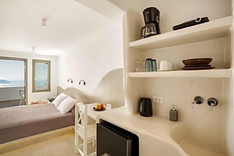 Kasimatis by La Perla - Adults Only, built in accordance with the Cycladic style, enjoy a privileged location at the top of Imerovigli with breathtaking views of the Blue Aegean Sea and the volcanic island of Santorini. All air-conditioned units offer modern comforts and amenities, such as satellite TV and bathroom with hairdryer. Some accommodations types also feature a spa bath. A la carte breakfast is daily served upon request in the room. Kasimatis by La Perla - Adults Only provide guests with 24-hour front desk services and free wireless internet in public areas of the hotel. Other facilities include swimming pool for adults, pool showers, library and free parking.