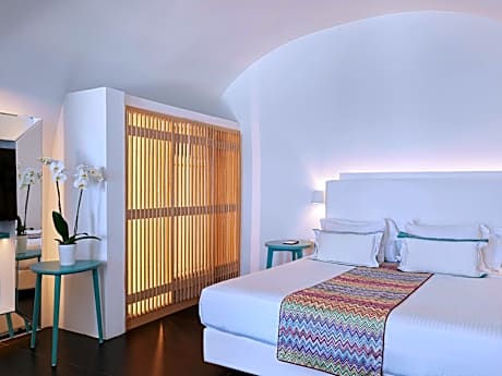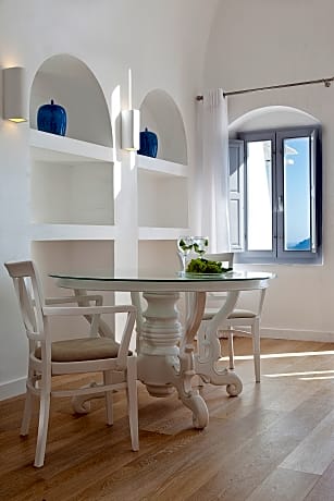 Perched on the cliffs of Oia, 300 feet above the blue waters of the Aegean, Katikies Hotel offers 2 restaurants - Botrini's Santorini and Katikies Lower Deck Lounge. Its infinity pools enjoy sweeping views of the Caldera. Each of the white-washed rooms has a private terrace with unforgettable sea views. All rooms are air conditioned and come with satellite TV and CD player. Guests also enjoy a mini-bar, as well as a mini wine cellar and a fridge. The boutique hotel’s facilities include open-air and indoor hot tubs and swimming pools. Free Wi-Fi internet access is available throughout the hotel. American breakfast with champagne is served in your room, or on your private veranda. Guests receive wine and fruit as a welcome gift. Katikies Hotel is 11 mi from Santorini airport and Athinios port.