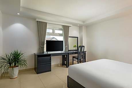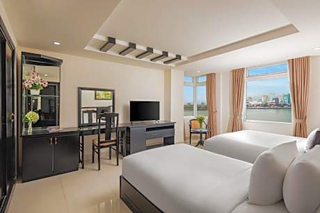 Kay Hotel Han Riverfront provides flawless service and all the necessary facilities for visitors. Stay connected with your associates, as complimentary Wi-Fi is available during your entire visit. The hotel offers taxi, car hire and shuttle amenities for your ease in navigating around Da Nang.When arriving by car, you'll be grateful for the on-site complimentary parking at hotel.The hotel offers reception amenities including concierge service, express check-in or check-out, luggage storage and safety deposit boxes to ensure a comfortable stay for guests. Should you require assistance, the ticket service and tours can also aid in booking tickets and securing reservations at the finest shows and events in the vicinity. Whether you're here for an extended stay or simply require fresh garments, the hotel ensures your cherished travel attire remains spotless and accessible with the convenience of laundry service located on the premises. Your stay will be comfortable with the presence of 24-hour room service, room service and daily housekeeping as an in-room amenity for your relaxation and enjoyment.Smoking is permitted solely in the specified smoking zones allocated by hotel. In order to ensure the utmost level of relaxation, the guestrooms feature an inviting design and are equipped with all basic necessities, creating a delightful stay experience. To ensure a pleasant stay, a selection of rooms at hotel come furnished with blackout curtains and air conditioning, all designed with your ease in mind. In select rooms, visitors can enjoy a touch of amusement with the availability of television and cable TV for their entertainment needs.Within specific rooms, a refrigerator, bottled water, instant coffee, instant tea and mini bar is conveniently available for your use.Understanding the significance of bathroom facilities in enhancing visitor contentment, hotel offers a hair dryer, toiletries and bathrobes within a few chosen chambers. Various excellent meal offerings at hotel ensure that enticing and easily accessible options are constantly available. Upon your arrival, don't miss experiencing bar for enjoyable in-house evening entertainment.