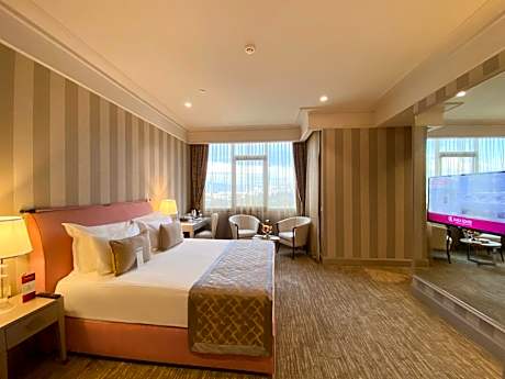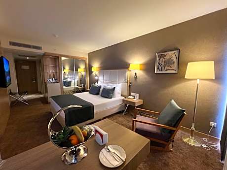 The recently inaugurated Kaya hotel is located in the Balçova District of Izmir. It features the largest thermal and spa facilities of the region, indoor and outdoor pools and a well-equipped gym. The air-conditioned guest rooms of the Kaya Izmir Thermal & Spa offer contemporary furnishings with flat-screen satellite TV. They all include a seating area and a work desk. A selection of Turkish and international specialties is served at the restaurant of the hotel. Guests can also benefit from an attentive room service. With a hot tub, a traditional Turkish bath, sauna and massage facilities, the extensive spa provides an array of facial and body treatments. Free Wi-Fi is accessible in all areas. Kaya İzmir is a 8-minute drive from İstinye Park Shopping Center. Kaya Izmir is a 17-minute drive from both the Adnan Menderes International Airport and the Basmane Train Station. Free private parking is available on site. License Number(s): 12286