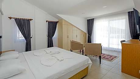 A good location for a relaxing getaway in Göcek, Kerem Apart Hotel is a condo hotel surrounded by views of the mountain. The property features an outdoor swimming pool, free bikes, and parking on-site among other facilities. 1.5 miles from The Blue Point Beach and 20 miles from Ece Saray Marina, the property features a garden and a bar. The condo hotel offers sea views, a sun terrace, a 24-hour front desk, and free Wifi is available. The condo hotel will provide guests with air-conditioned units with a wardrobe, a kettle, a minibar, a safety deposit box, a flat-screen TV, a balcony, and a private bathroom with a shower. Some units also have a well-equipped kitchen with kitchenware. At the condo hotel, the units are fitted with bed linen and towels. There is a coffee shop, and a grocery delivery service and packed lunches are also available. Sightseeing tours are available in the surrounding area. If you'd like to discover the area, cycling is possible in the surrounding area, and the condo hotel can arrange a car rental service. Fethiye Marina is 20 miles from Kerem Apart Hotel, while Gocek Yacht Club is 1.4 miles from the property. Dalaman Airport is 13 miles away, and the property offers a paid airport shuttle service.